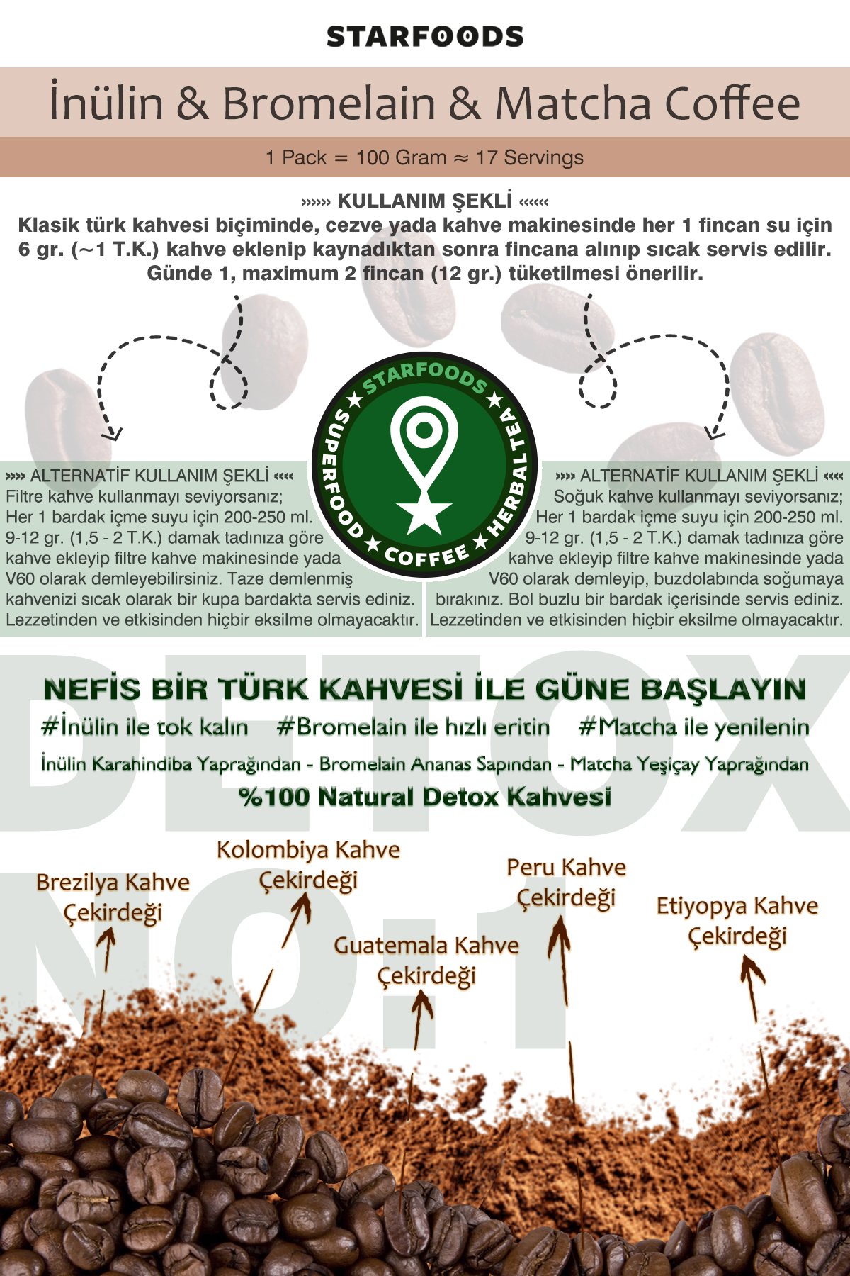 STARFOODS Inülin Ve Bromelain Coffee 100 Gr. | Türk Kahvesi | Filtre Kahve | No: 1 Detox Coffee